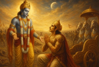 “श्रीकृष्ण का युद्ध केवल बाहरी नहीं था, वह युग के परिवर्तन का संकेत था — द्वापर से कलियुग की यात्रा।”
