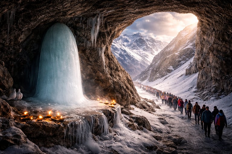 कश्मीर की ऊँची पहाड़ियों के बीच स्थित यह गुफा हजारों वर्षों से श्रद्धा और आस्था का केंद्र रही है। हर साल लाखों श्रद्धालु कठिन यात्रा करके यहां दर्शन करने पहुंचते हैं।